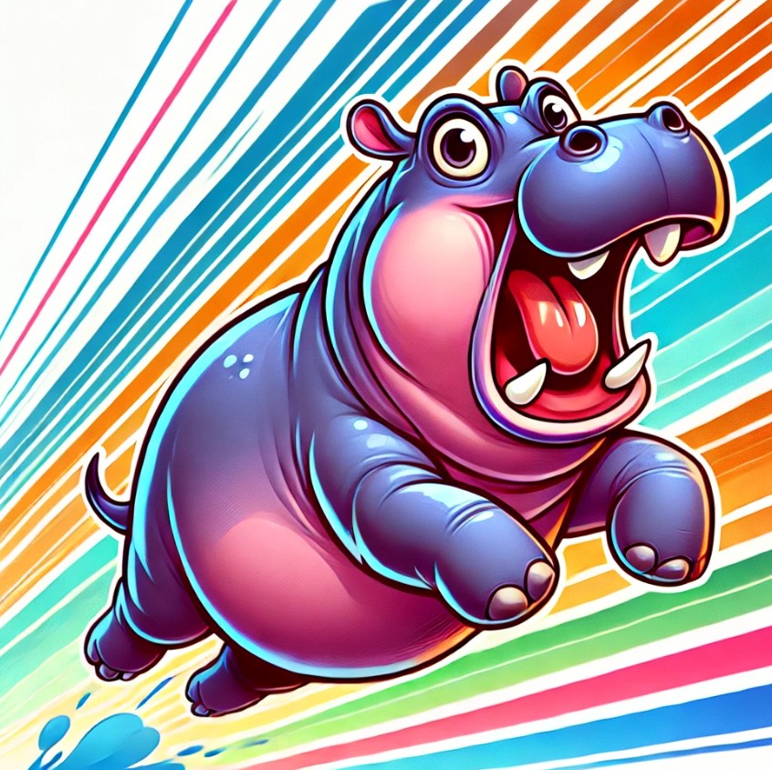 体の動き:カバが走っている、または前に突進しているポーズ。