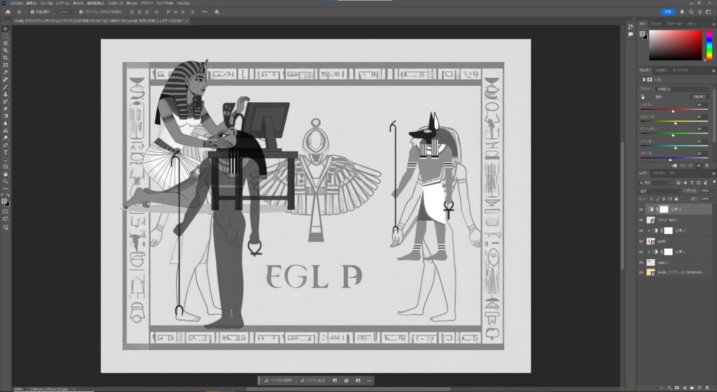 ③対象レイヤーとその上にできた白黒レイヤーの境界線にカーソルを置き、「Altキー」を押下したまま白黒レイヤーを対象レイヤーをクリック