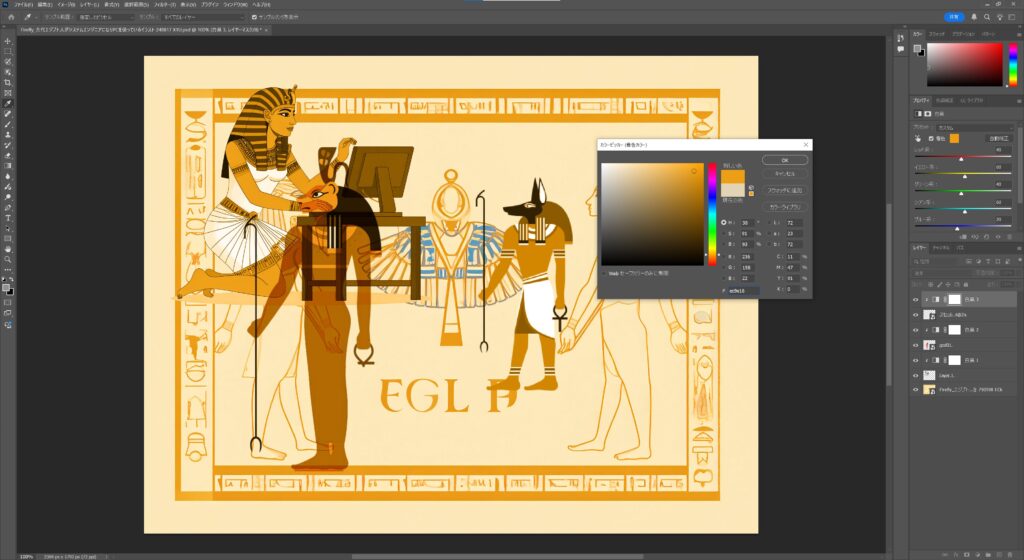④白黒レイヤーを選択→着色から任意の色を適応
